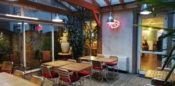 Gemütlicher Frühstücksraum, offen im Sommer