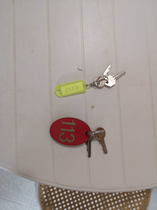 Da oben sieht man den Schlüssel des Zimmermädchens, den sie direkt vor unserer Tür vergessen hat