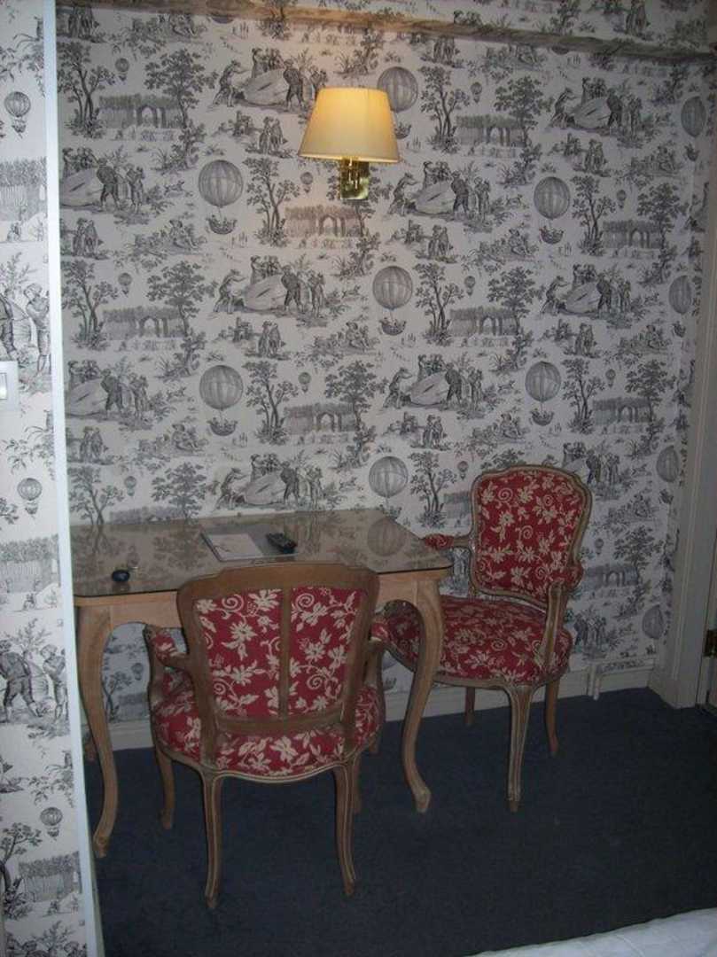 Ansicht Schreibtisch m. Stühlen und Tapete im Toile de Jouy-Style