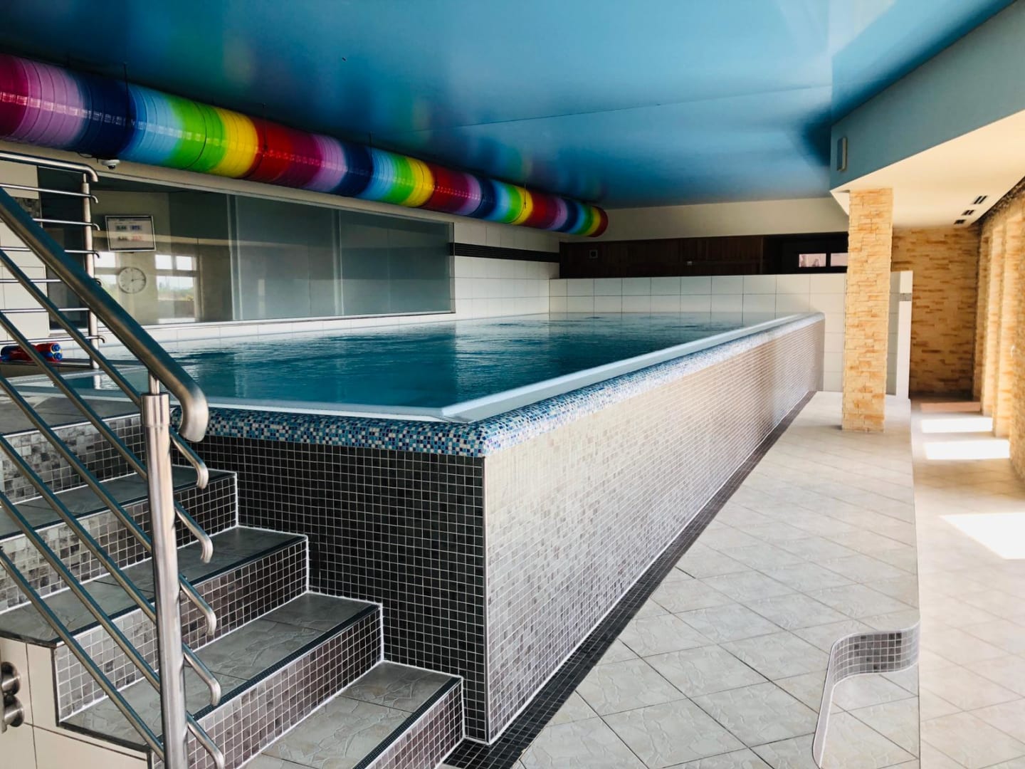 Schöner gepflegter Pool auf dem Dach. Indoor. Leider nicht wirklich warm.
