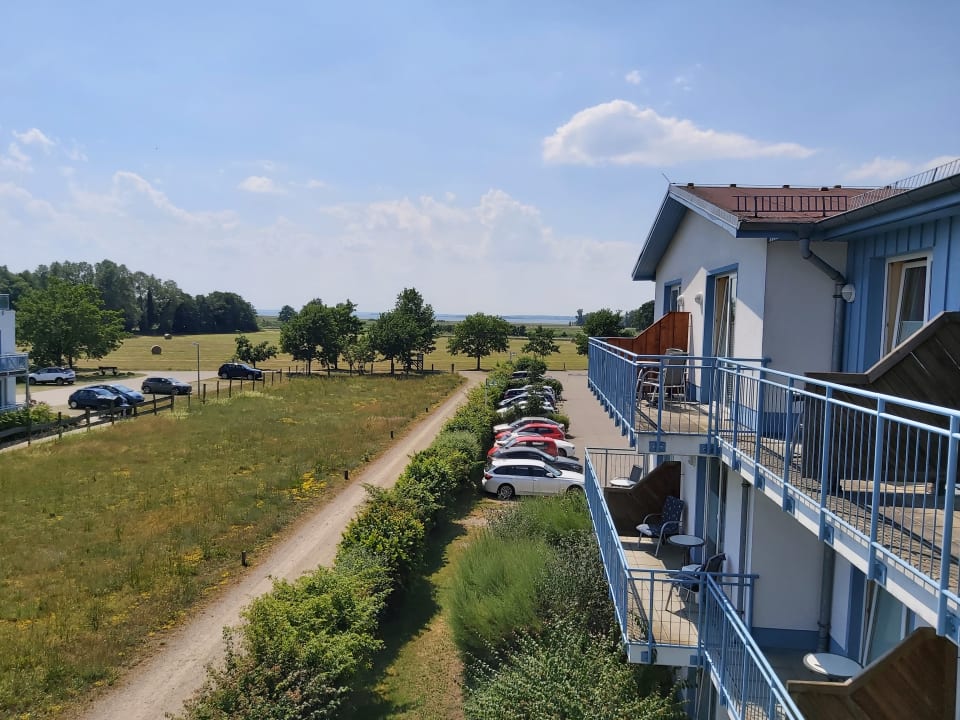 Ausblick vom Balkon in Richtung Achterwasser