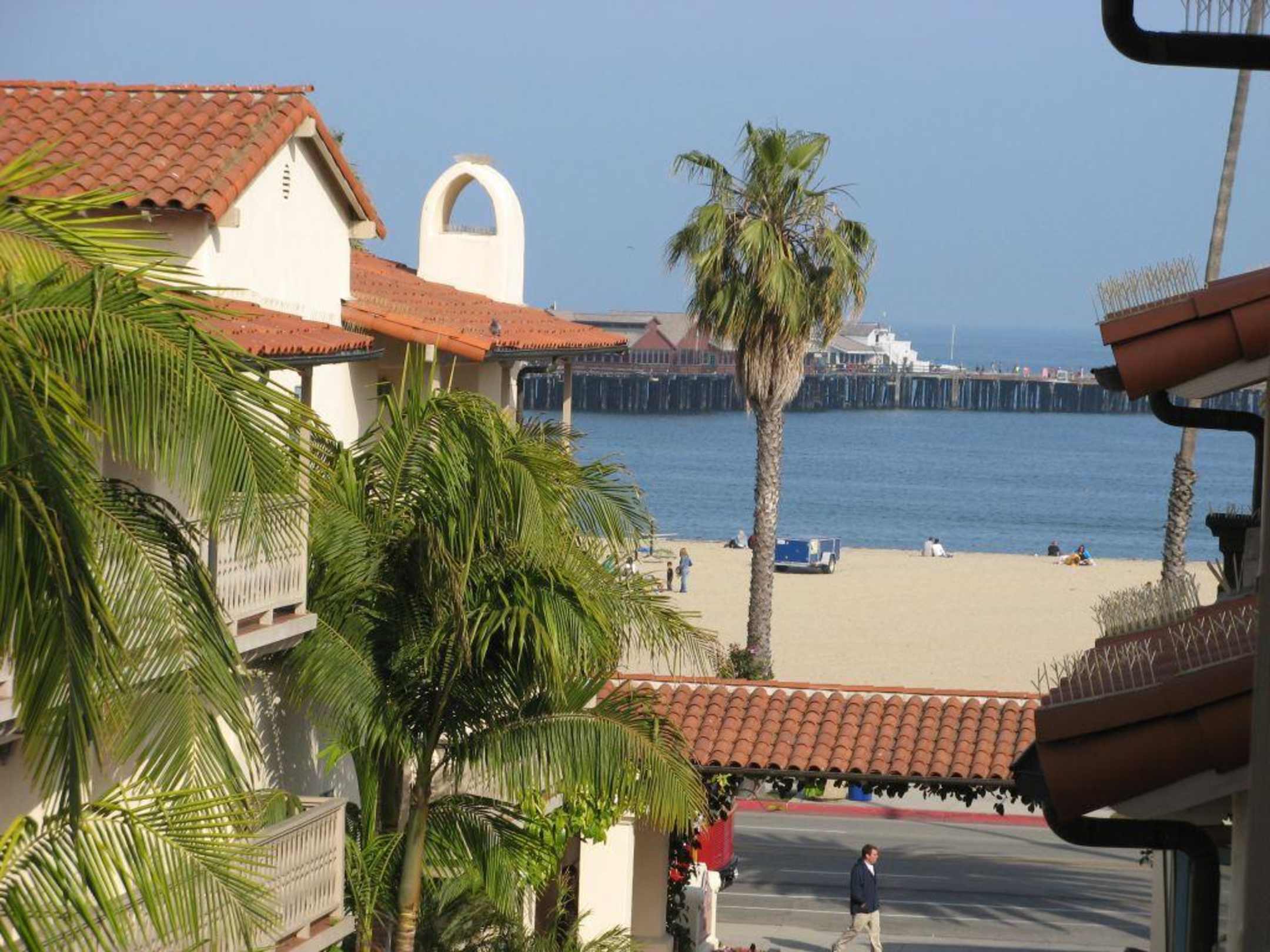 Hotel Harbor View Inn in Santa Barbara: seitlicher Blick vom Balkon mit Zoom (es handelte sich um ein Zimmer ohne Meerblick)