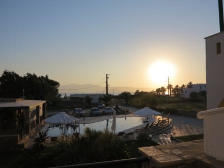 Blick zum Pool und Meer in der Abendstimmung