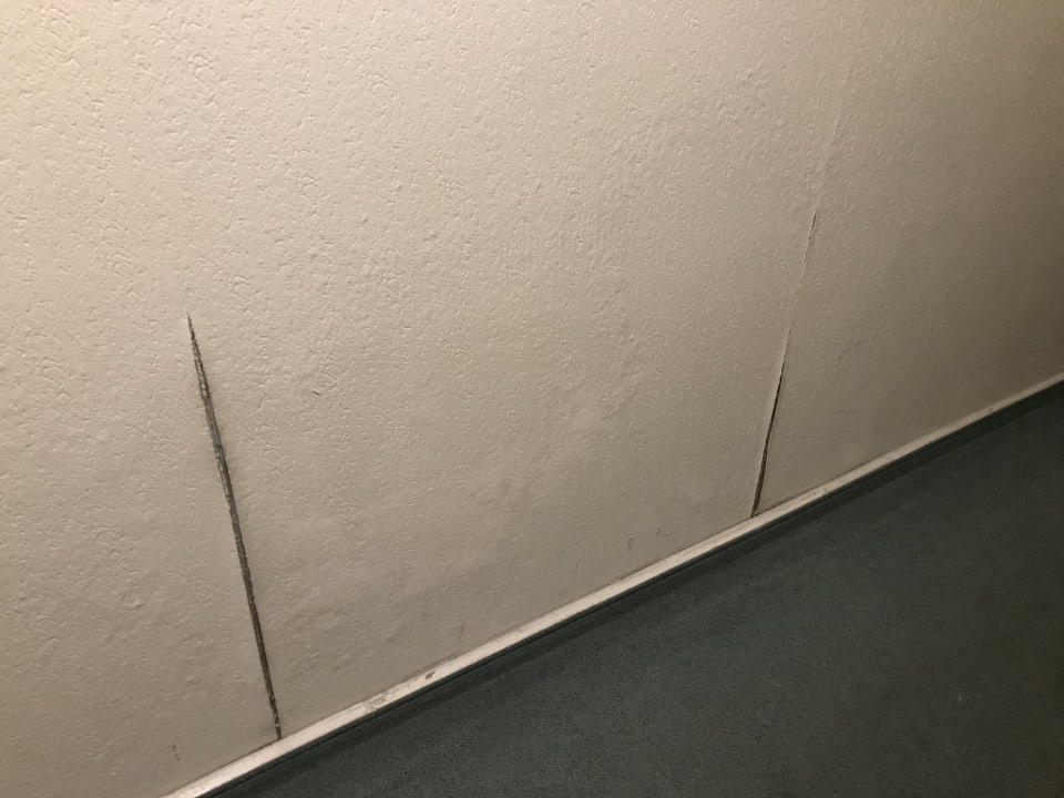 Im Gang zu den Zimmern im EG löste sich die Tapete.