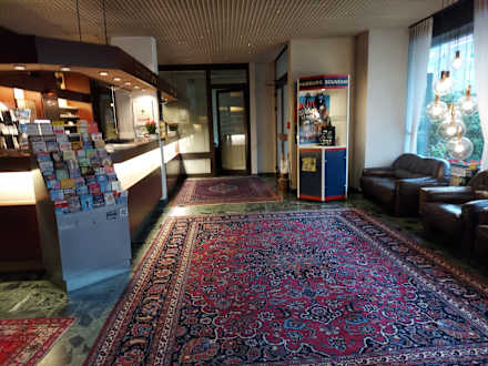 LobbyBlick aus dem Aufzug heraus in die Lobby. Auch hier alles sehr dunkel und veraltet. Sehr schade.
