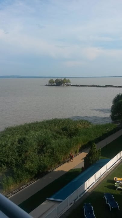 Blick zur Schiffanlegestelle vom Balkon aus. Mit einem Teil der Sonnenterrasse