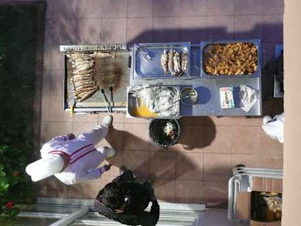 Hier wurden Fisch, Kartoffelecken gebraten