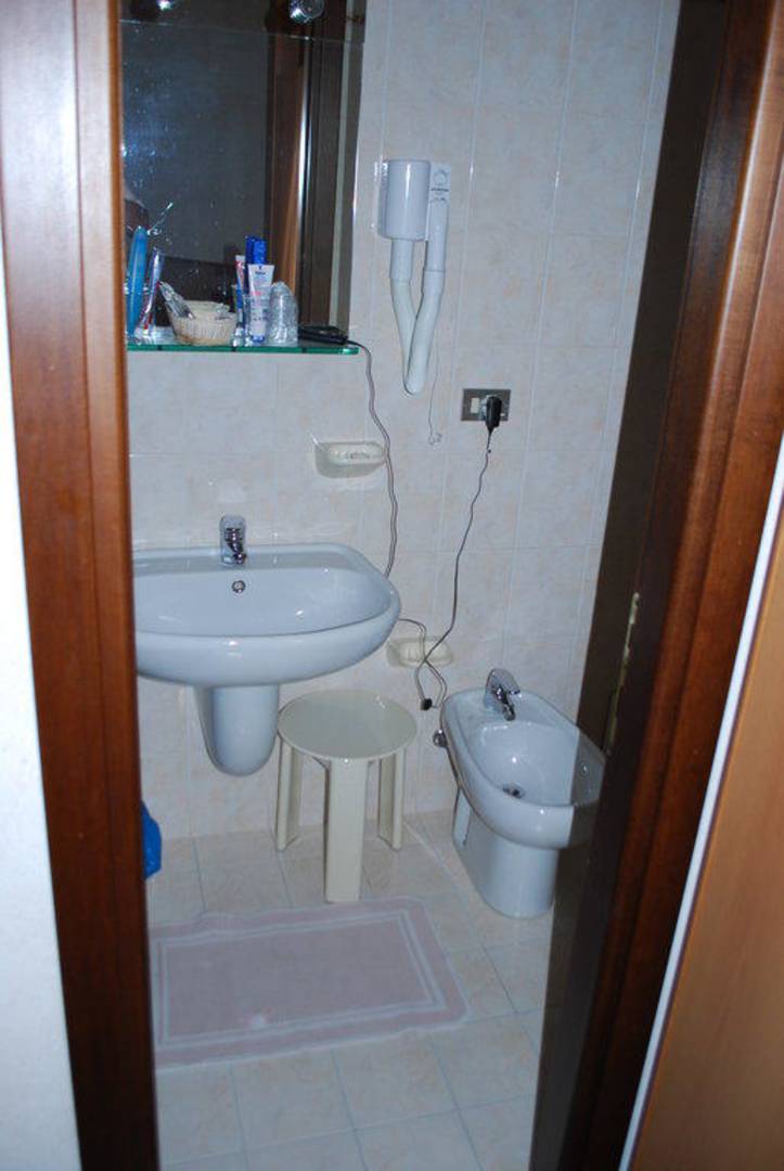Blick ins eher kleine Badezimmer