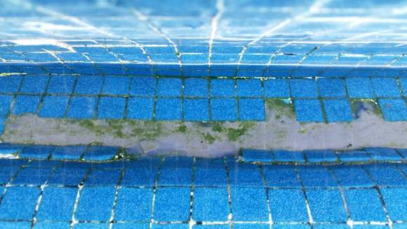 Grüner Pool mit fehlenden Mosaiksteinen