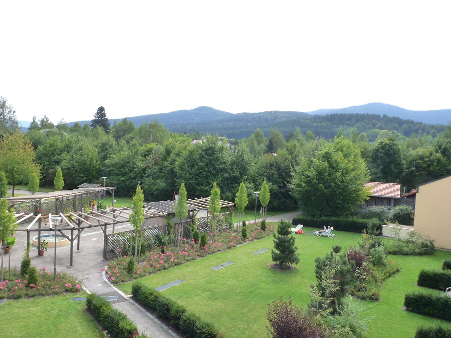 Ausblick vom Balkon in den Garten