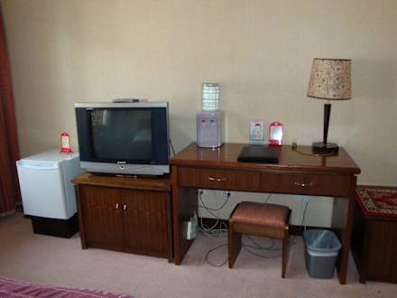 Blick zum Schreibtisch und Fernsehapparat