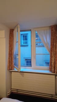 Aussicht vom Bett aus ... das Hotel ist sehr zentral und mein Zimmer ging zur Seitengasse raus ... daer war es aber auch ruhiger als die Zimmer zur Straße raus