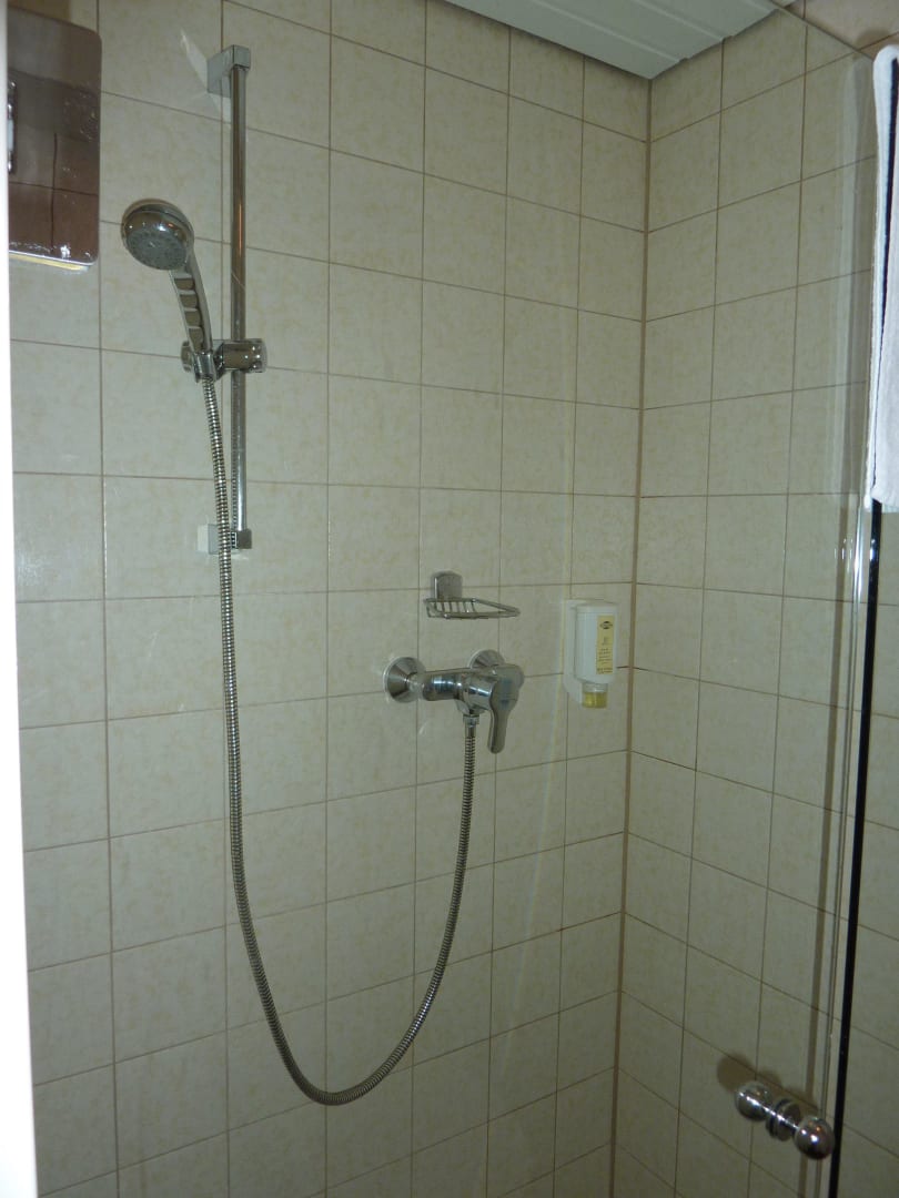 Das Badezimmer mit Dusche und WC.