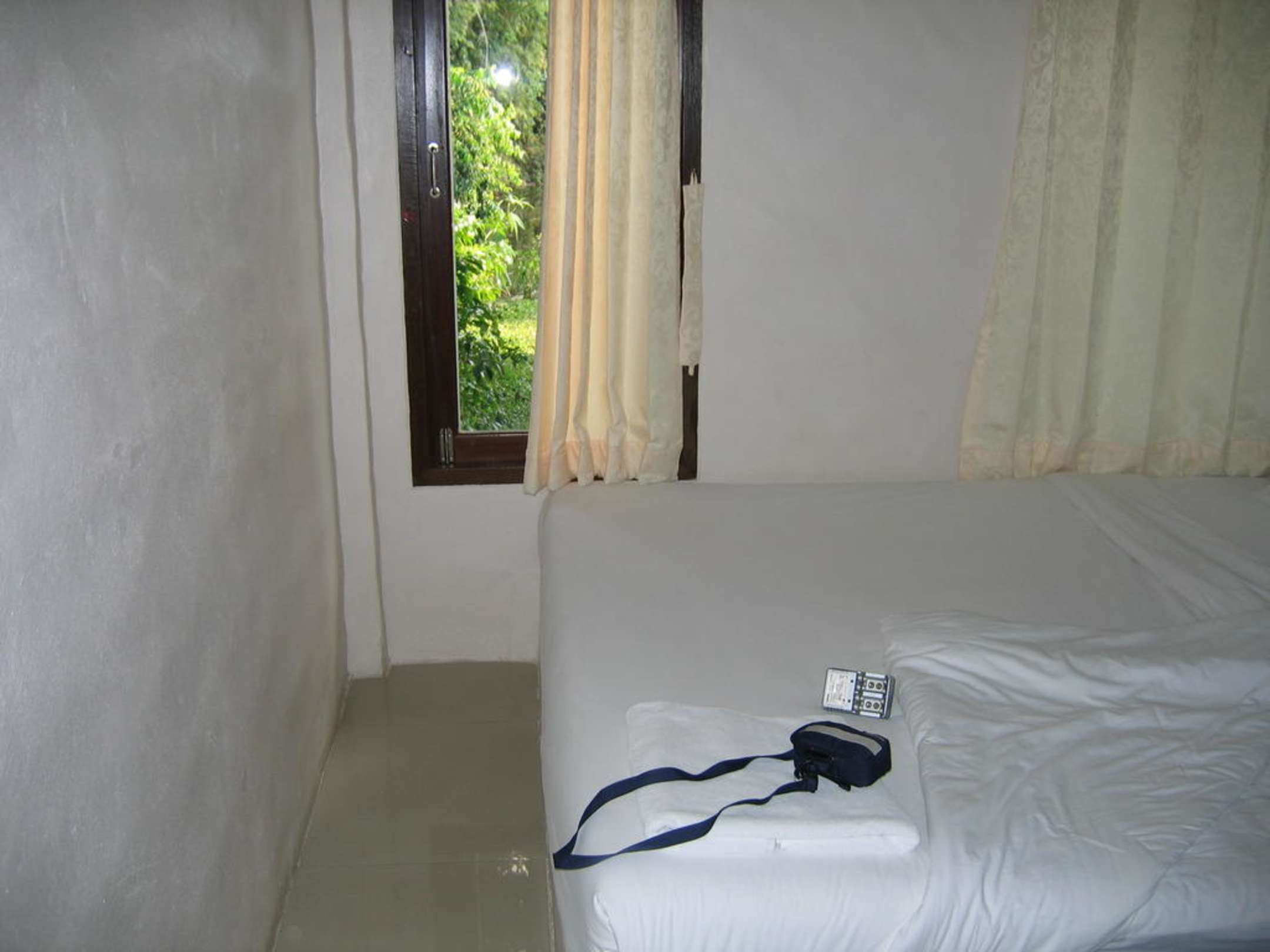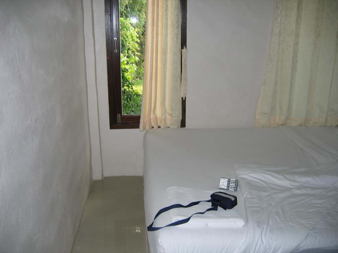 Das Bett stand direkt mit 2 Seiten an der Wand, da wir die Zimmer jeweils alleine nutzten kein Problem mit dem Platz....zu zweit möchte ich nicht in diesem Raum länger wohnen.