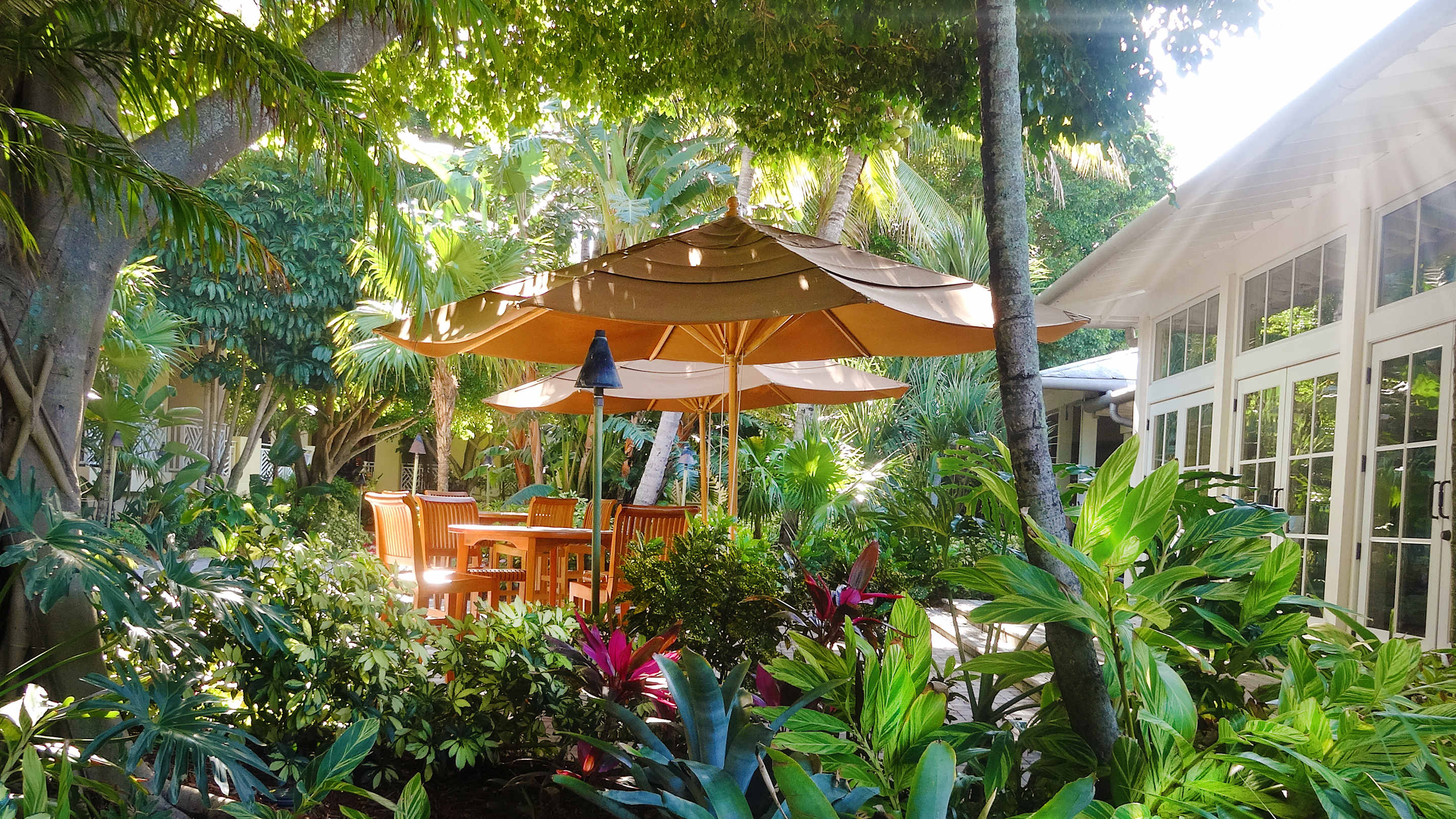 Tropical gardens outside Tarpon Bay Restaurant
