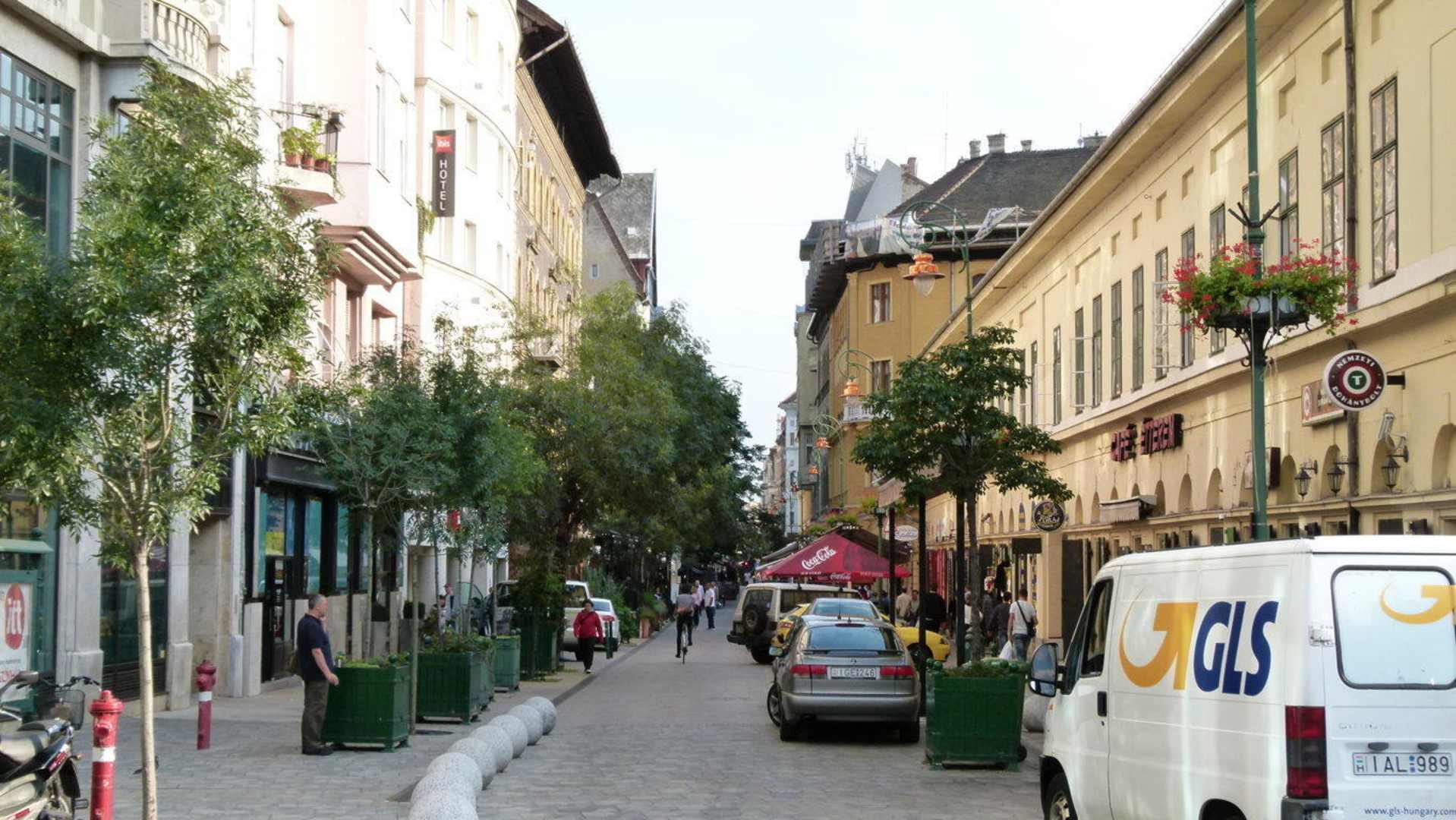 Blick in die noch fast leere morgendliche Raday utca.