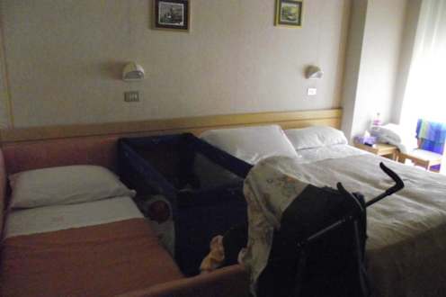 Unser Doppelzimmer für vier PersonenDas Zimmer ist zwar klein, aber Reisebett und Buggy konnten wir gerade noch reinquetschen