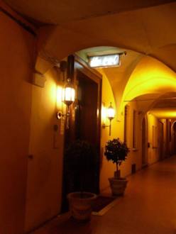 Der Laubengang zum Hotel