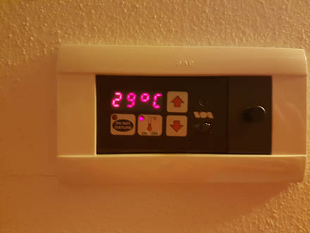 ZimmerKlimaanlage hat bei 29° !aufgehört anzuzeigen uns nur mehr geflackert! Das Handy zeigte deutlich über 30° an!