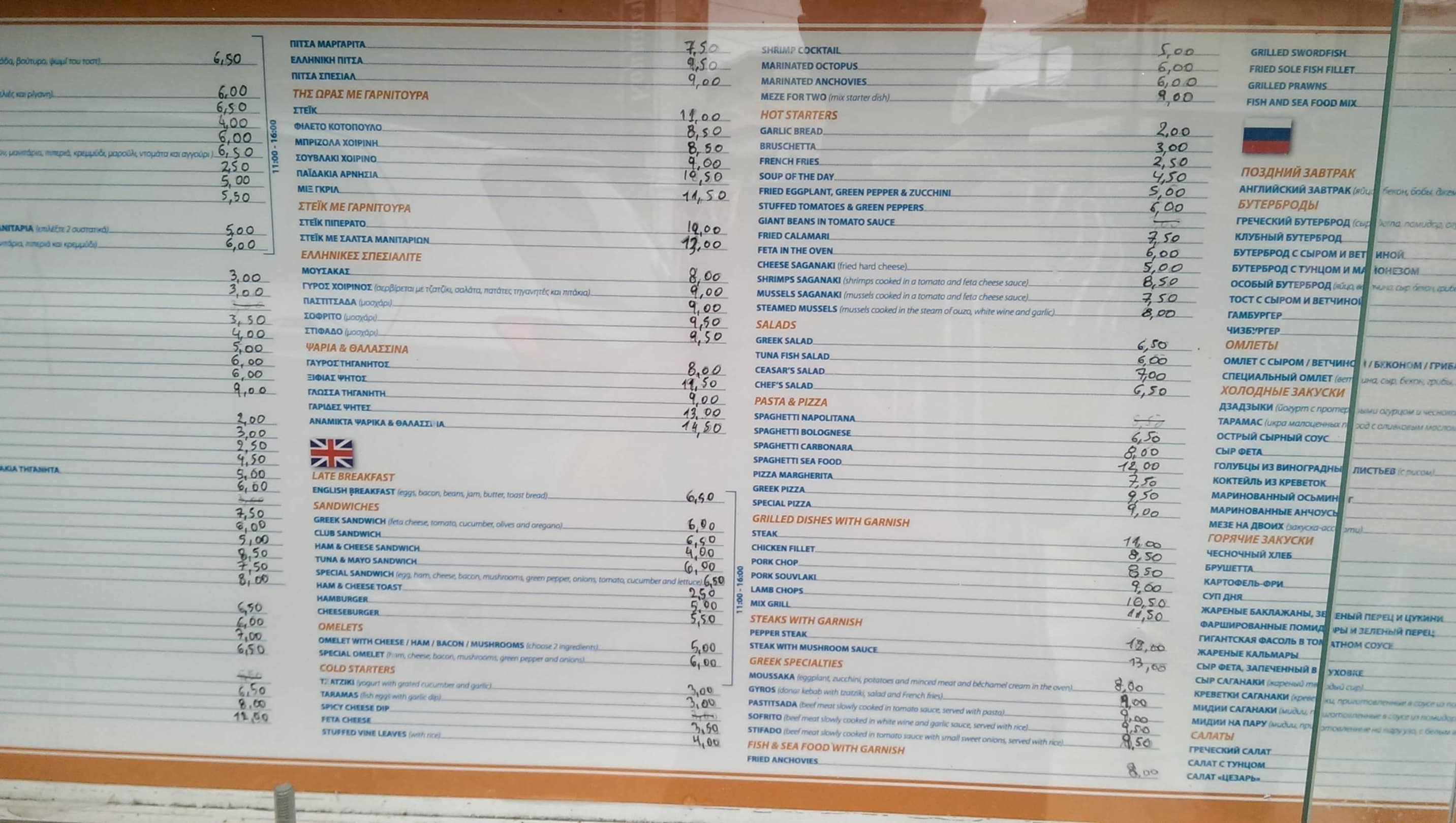 Speisekarte des Hotels