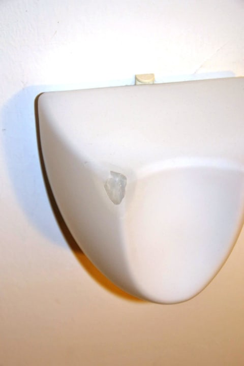 Die Lampe neben dem Bett war mit Silikon ausgebessert