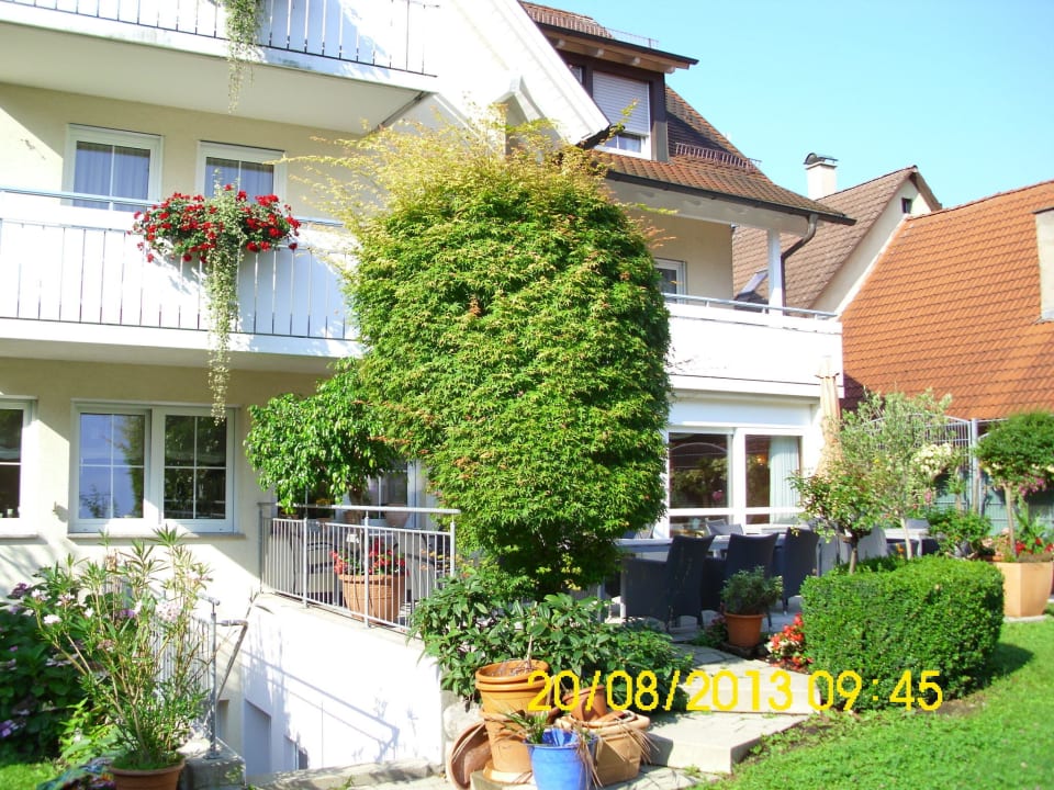 Blick vom Garten auf das Hotel