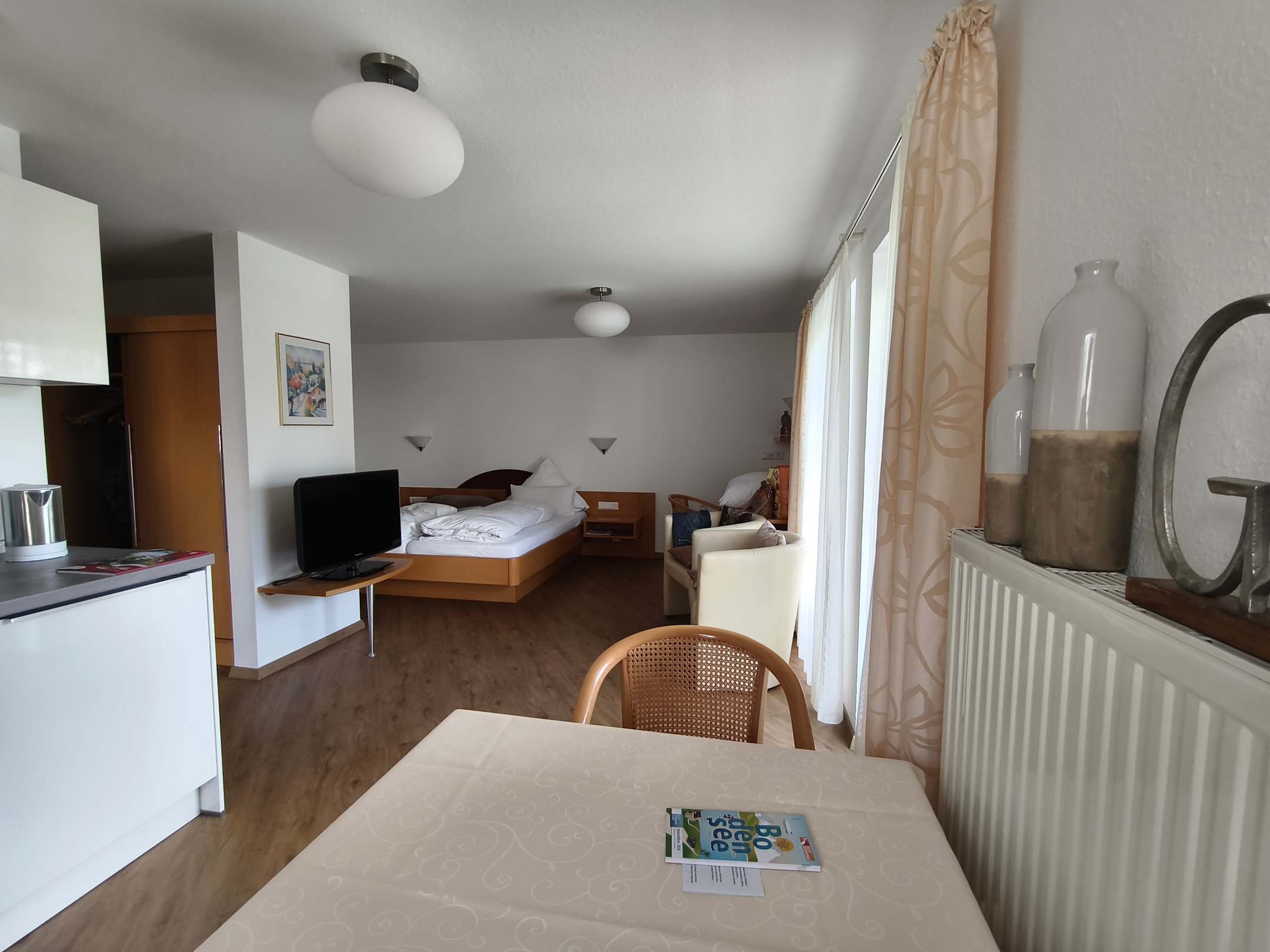 Apartment Nr. 6 mit Balkon war bei unserer Anreise leider nicht sauber, was die Tochter von Fr. Reiß selbst festgestellt hat... Wir fanden auch den Preis viel zu hoch, Bodensee Region hin,- oder her 150 € plus ist einfach zu viel...