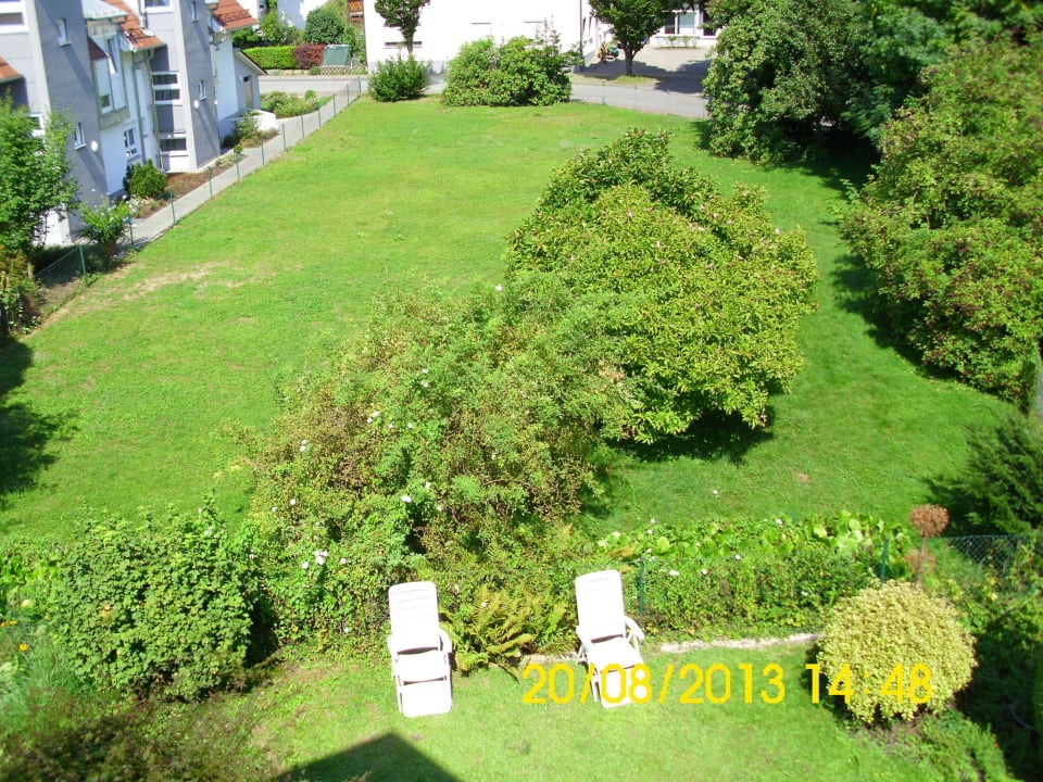 Blick vom Balkon in den Garten