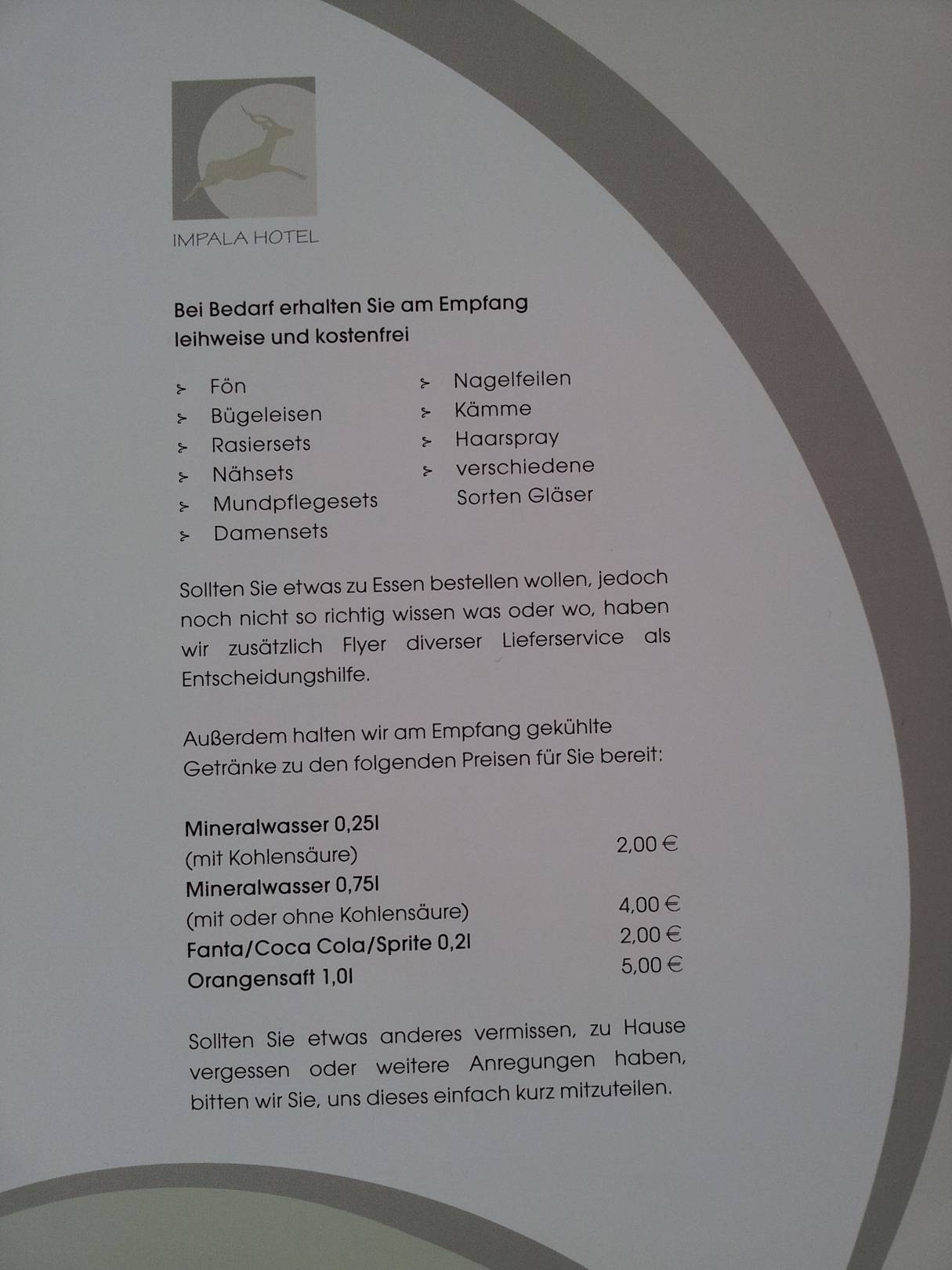 Servicekarte für alle die was vergessen haben oder aber Wünsche