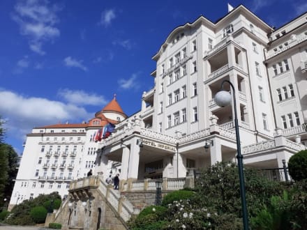 AußenansichtAusblick aufs Hotel während des beschwerlichen, steilen Weges, von der Bergstation der Standseilbahn kommend.