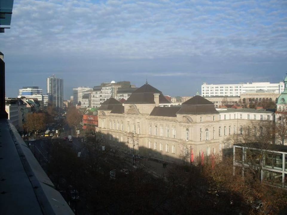 Blick vom Balkon zum Gebäude der Fakultät Gestaltung der Universität der Künste.