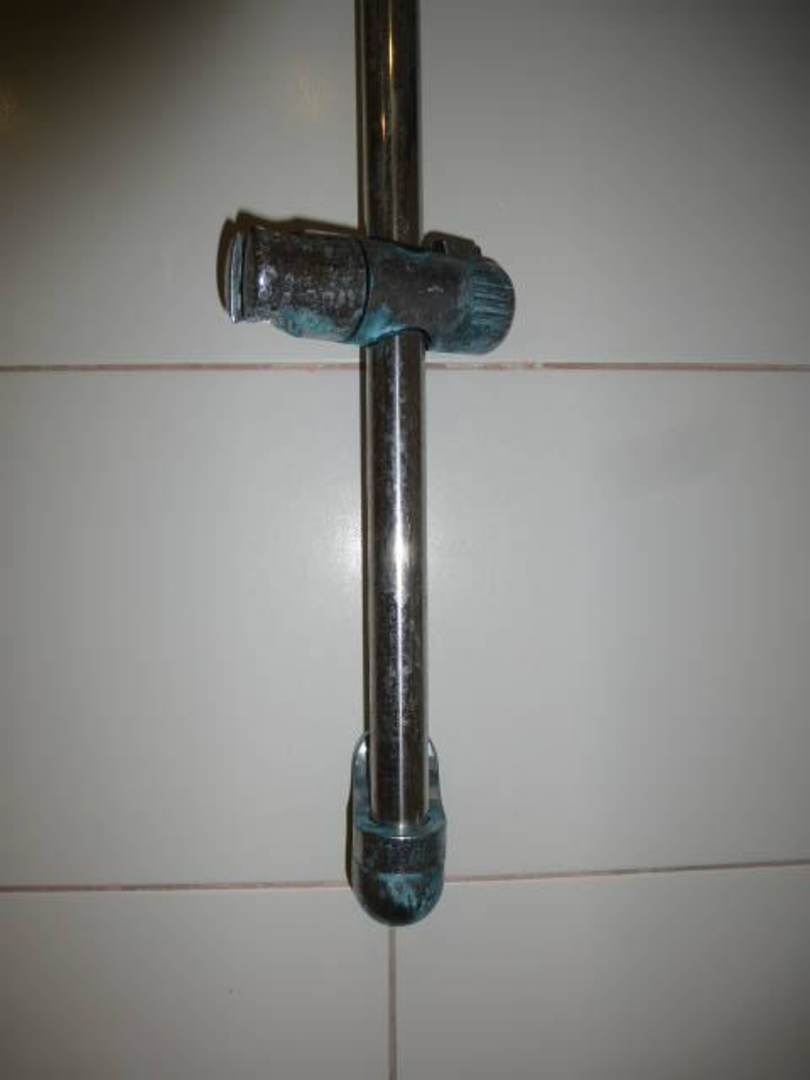Stark verschmutzte Duschkopfhalterung