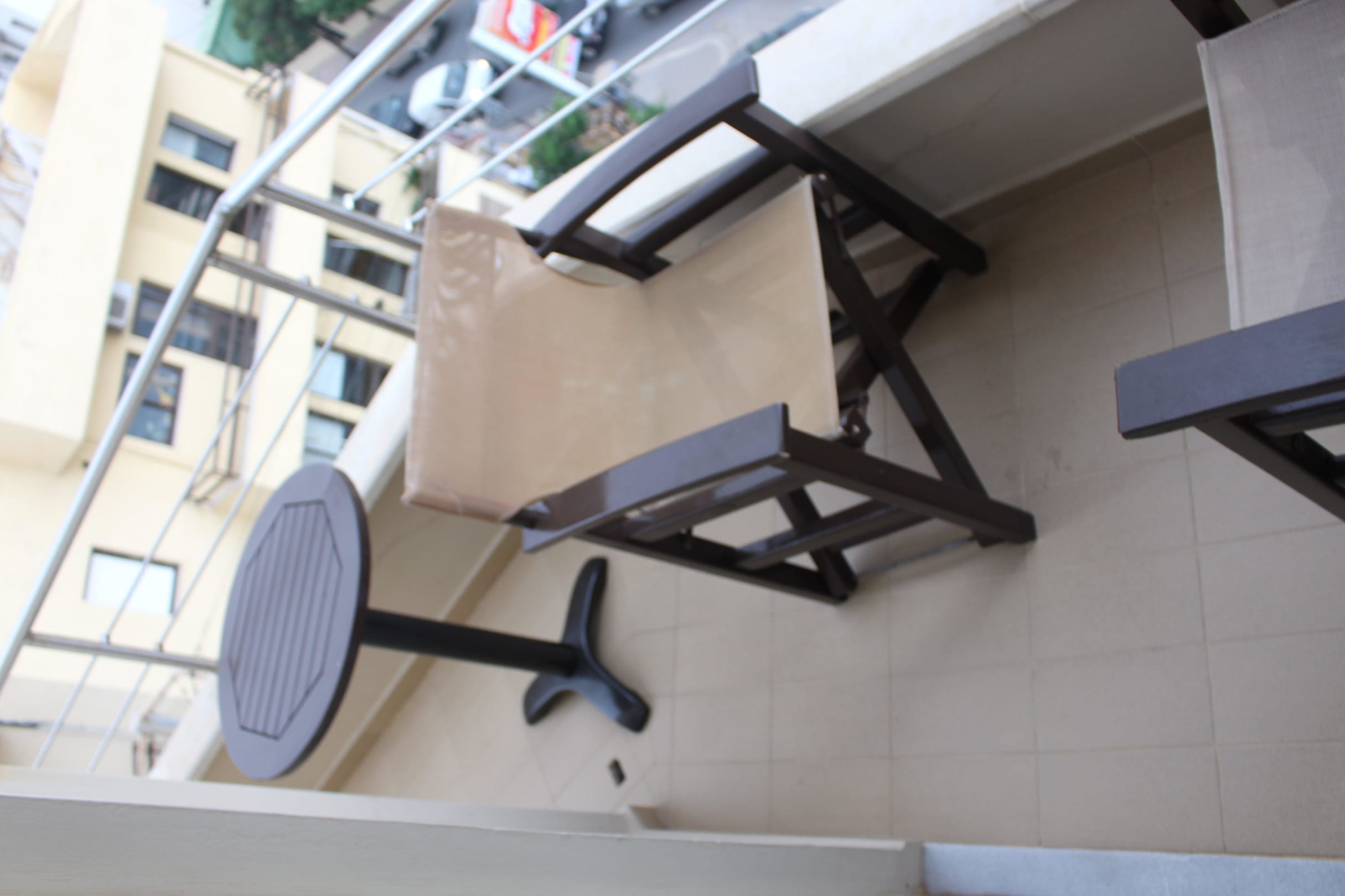 Von diesen Stühlen aus kann man wunderbar den wilden griechischen Verkehr beobachten! Das Meer sieht man ebenfalls, rückt dabei jedoch in den Hintergrund.