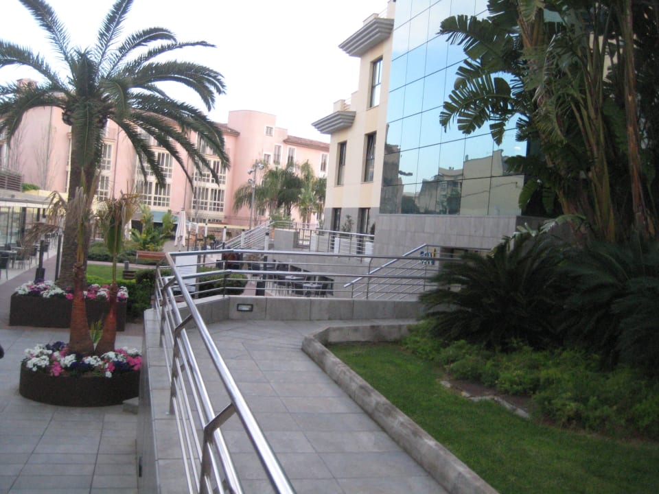 Gartenanlage rechts Lobby, links Spa, zus. Zimmer