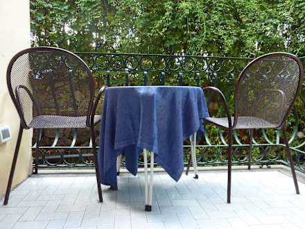 Kleiner Balkon mit Tisch und 2 Stühlen