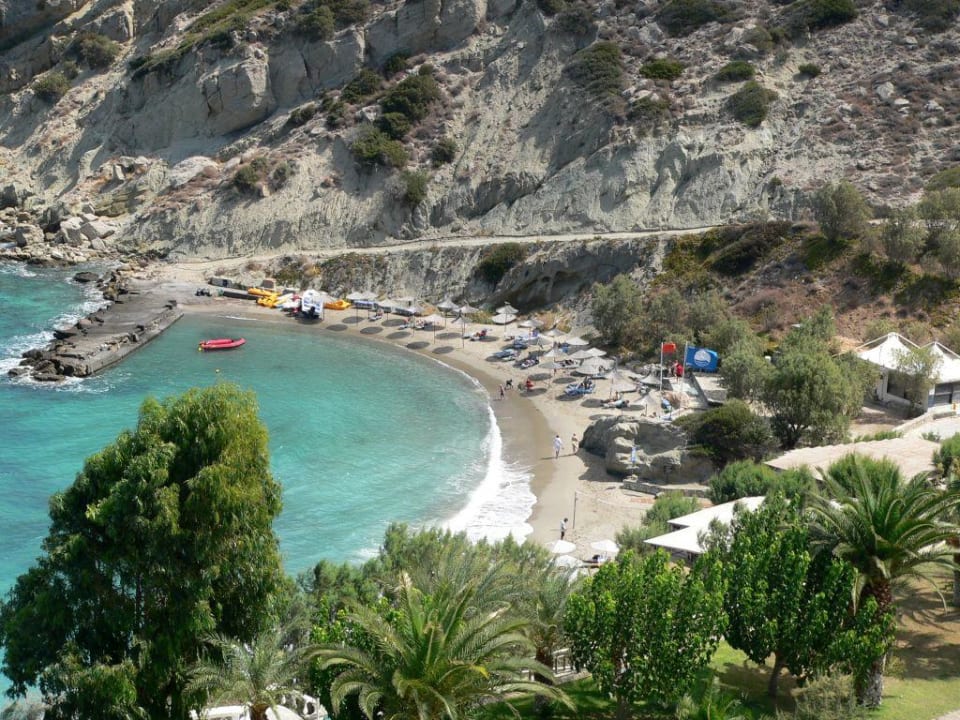 Blick vom Rezeptionsbalkon zum Oststrand des Istron-Bay-Hotels