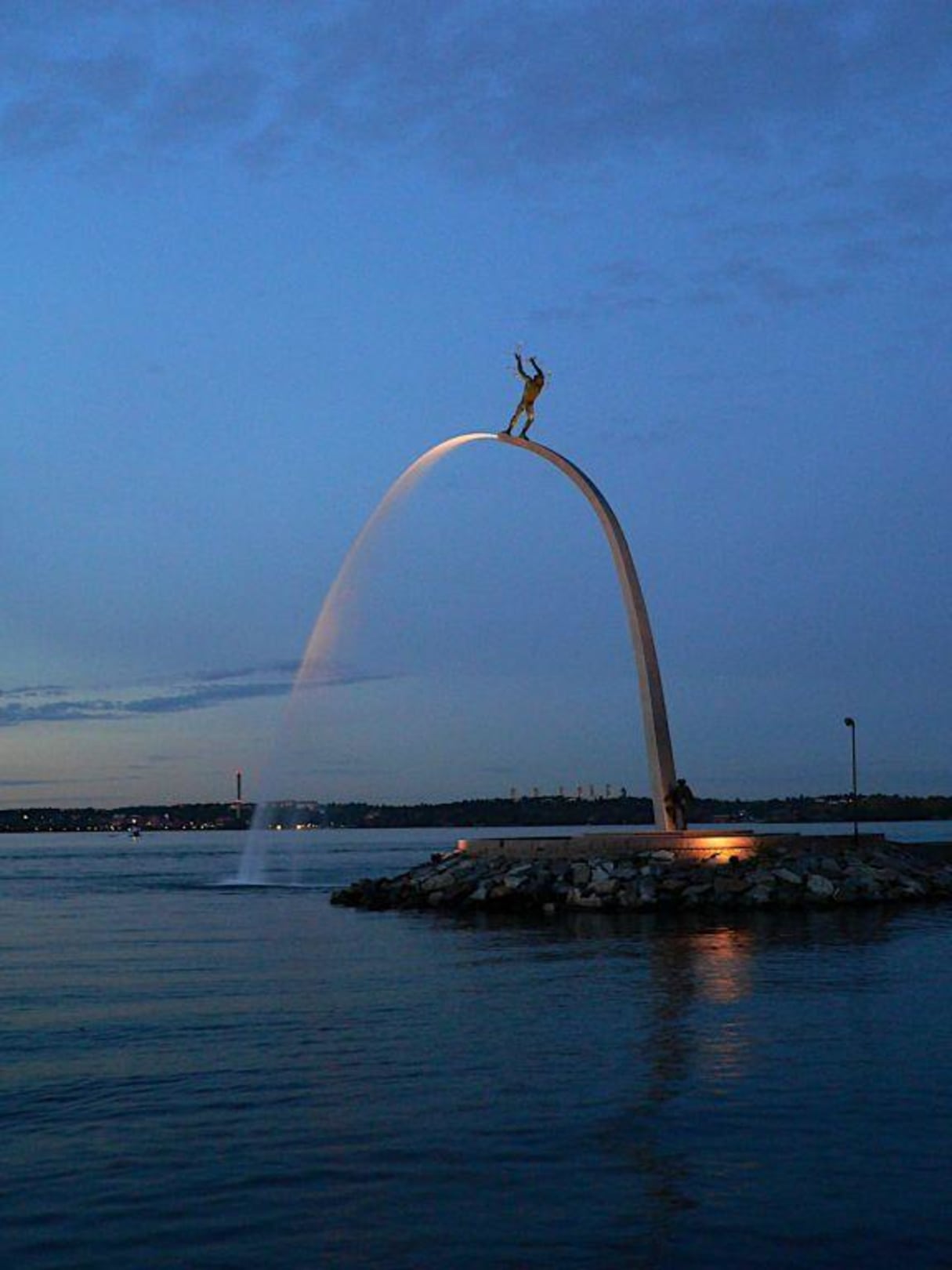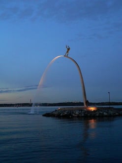 Am Hafen in Nacka Strand steht diese imposante Fontäne.