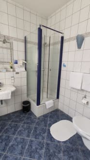 Dusche mit leicht erhöhtem Einstieg