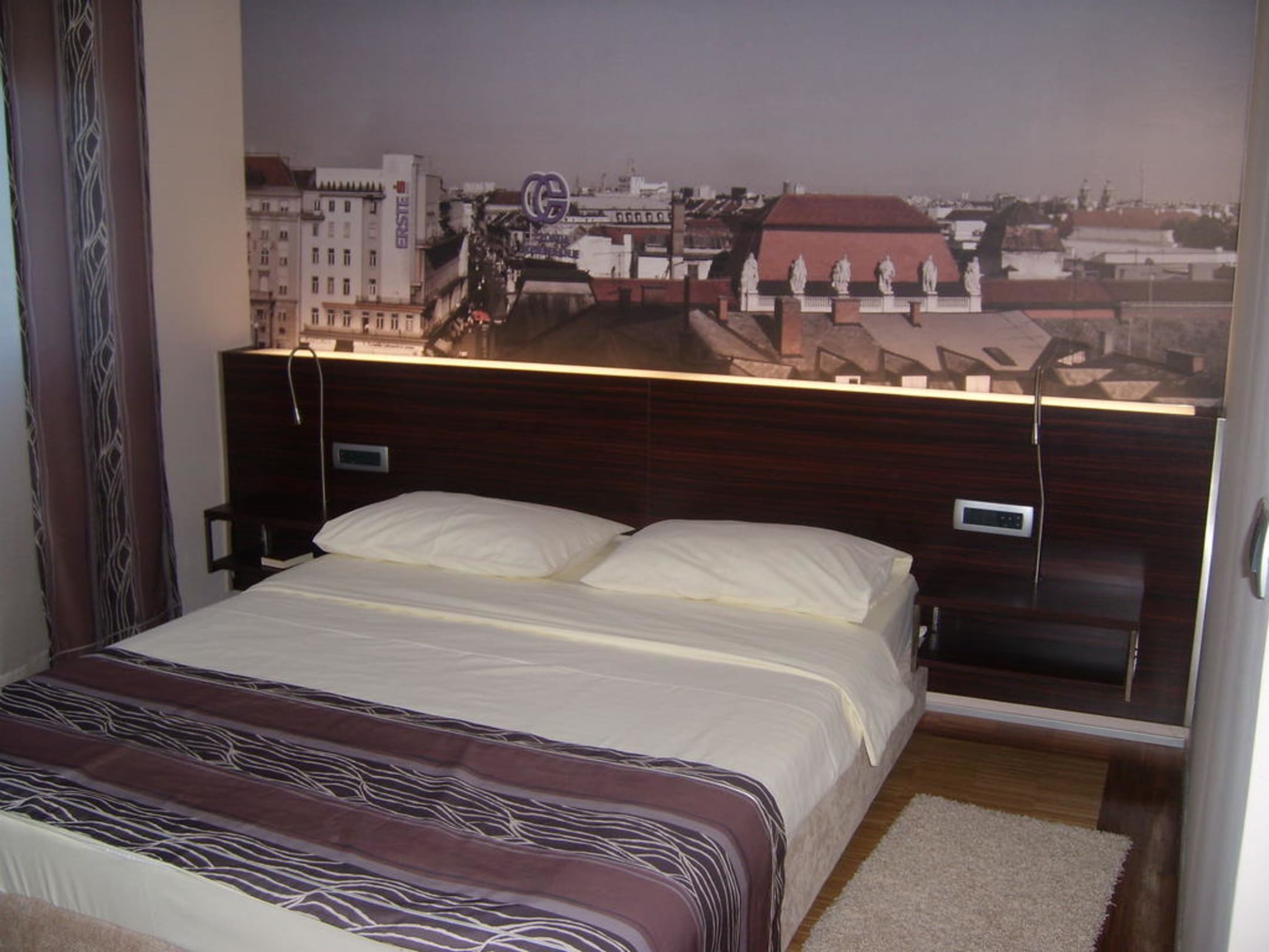 Bett mit schöner Fototapete
