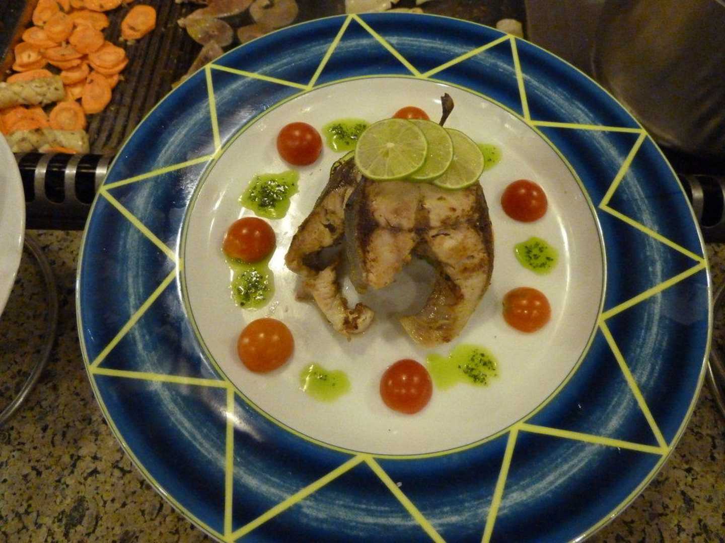 Präsentationsteller gegrillter Fisch