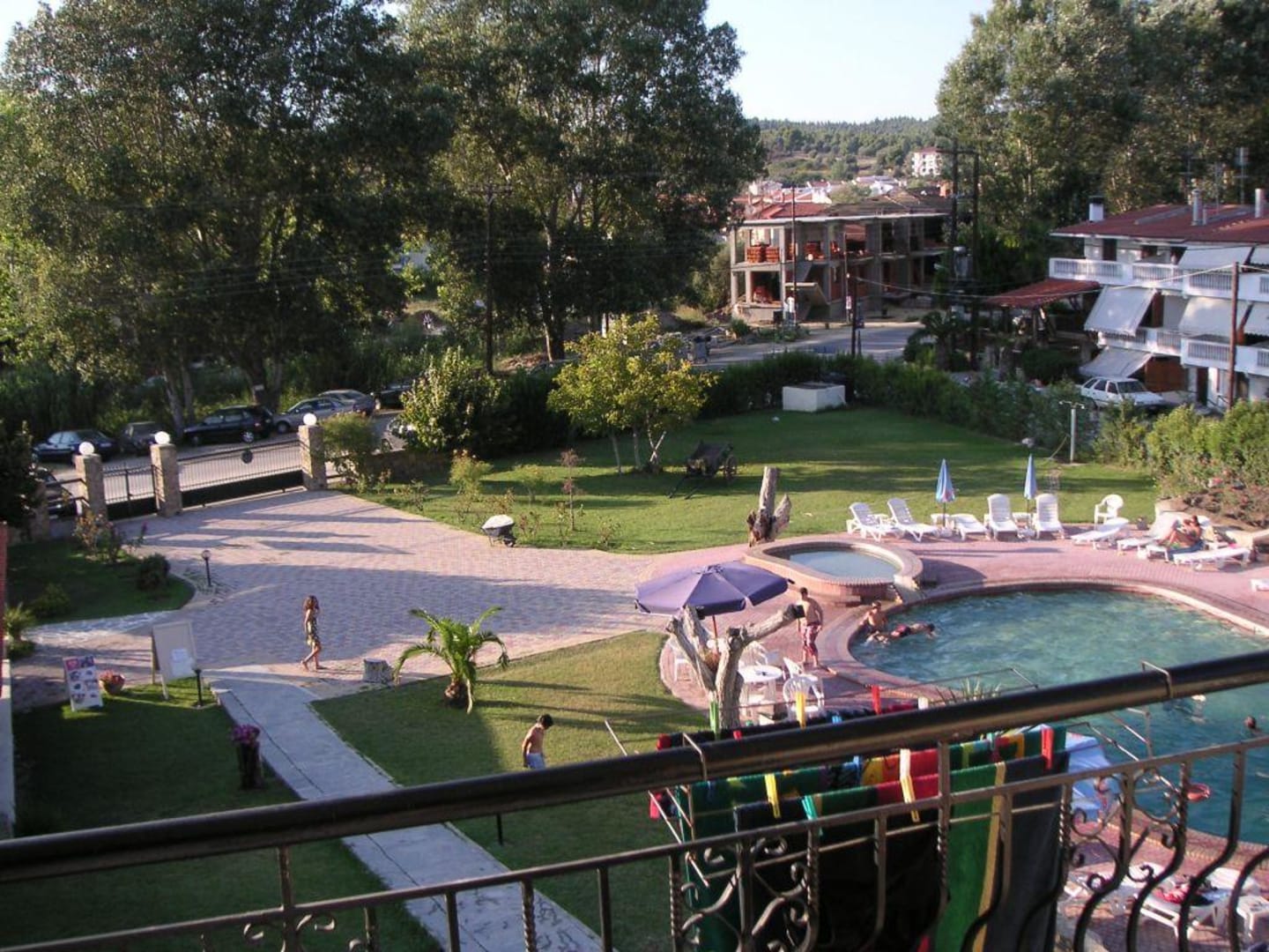 Blick auf den Pool, sowie die "Hauptstraße". Im Hintergrund die vielfach genannte Baustelle.