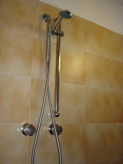 ZimmerDusche (das gesamte Badezimmer bildet den Duschraum, daher vorher alle Sachen, die nicht nass werden sollen, am besten rausstellen)