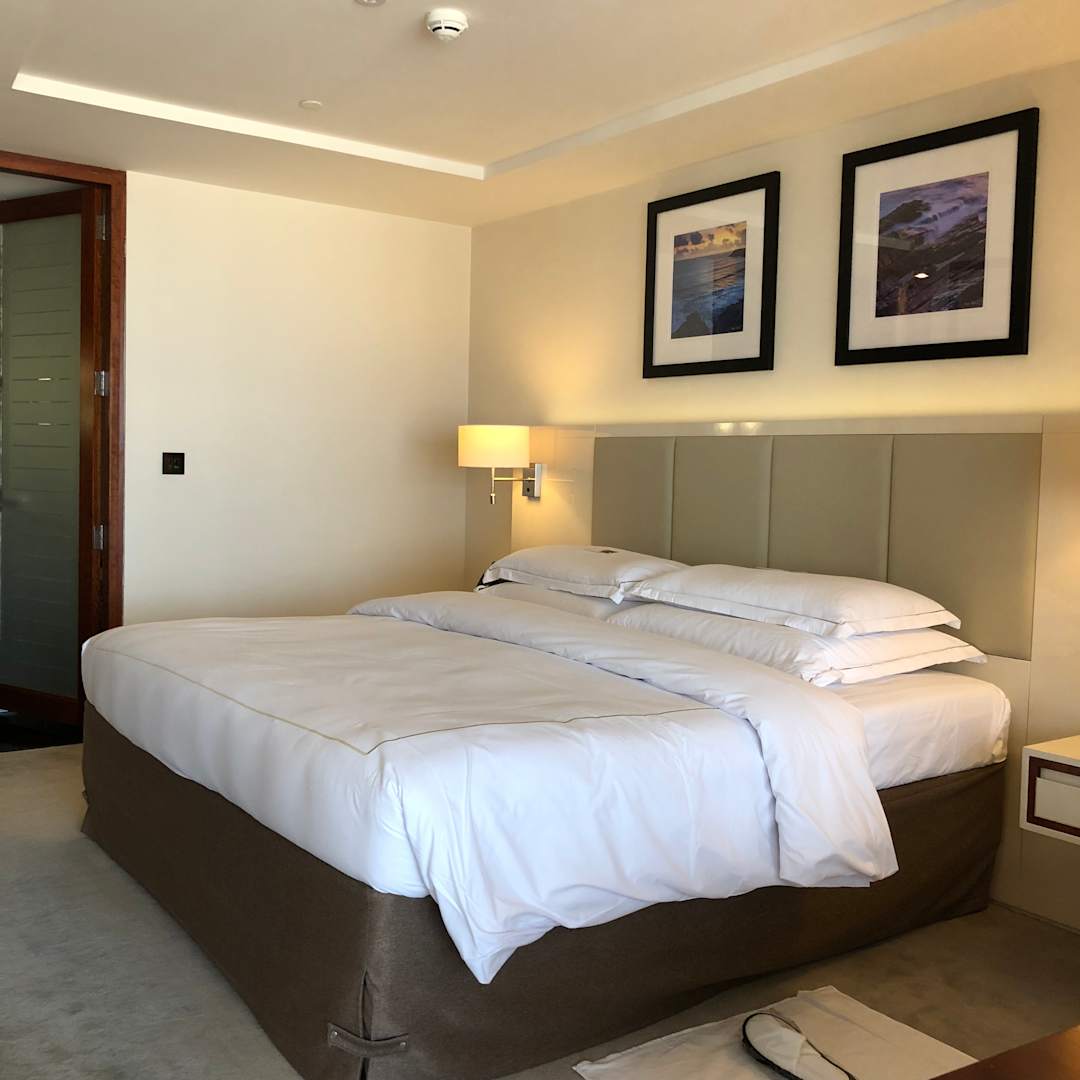 Das enorm breite Boxspringbett ist ausgesprochen bequem.