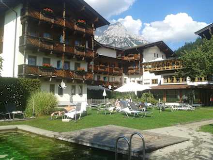 Schwimmteich mit Wilden Kaiser im Hintergrung