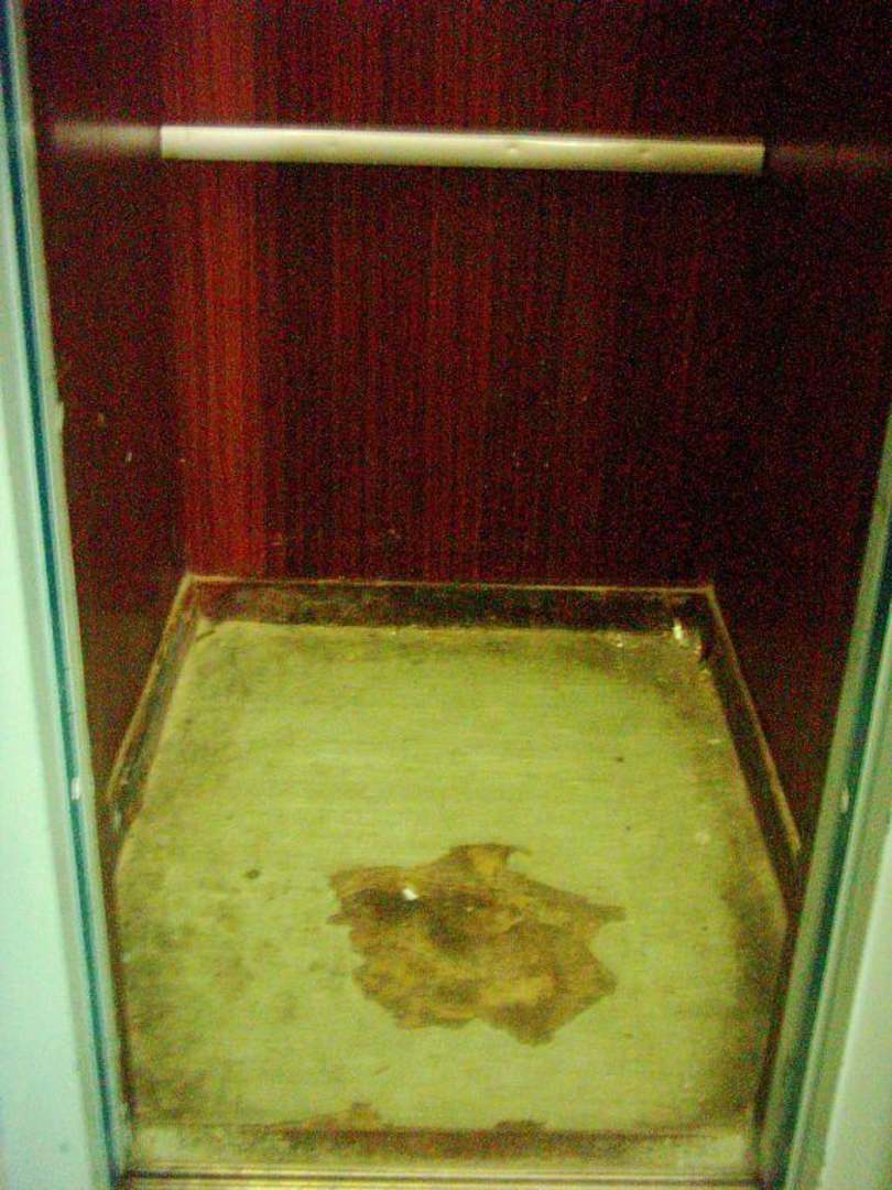 In diesem gammeligen Fahrstuhl für die Hotelgäste stinkt es fürchterlich.