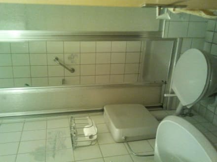 Deutlich zu sehen, dass das WC vor dem Duscheinstieg steht...
