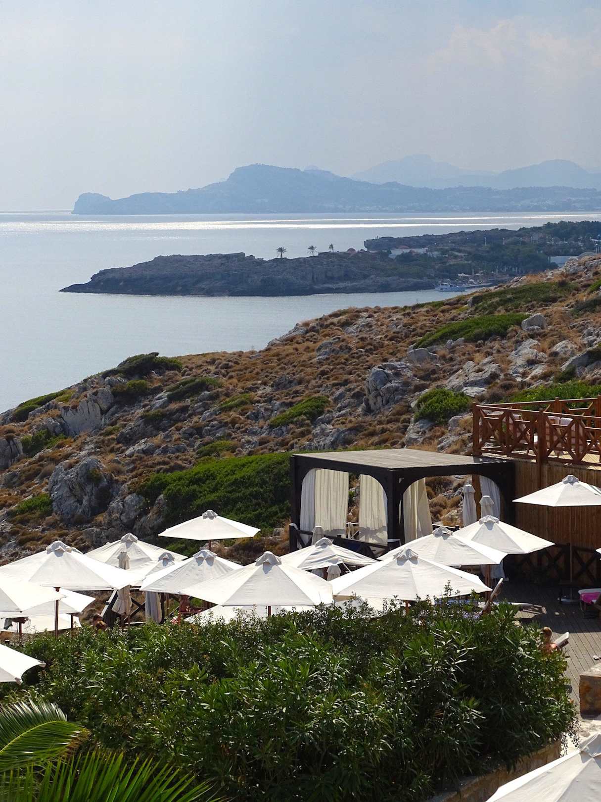 Blick vom Hotel zu den Thermen von Kalithea