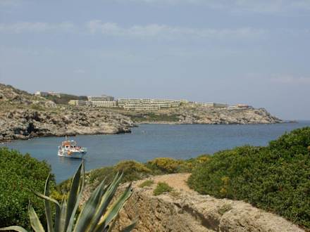 Blick von der Therme Kalithea zum Hotel.