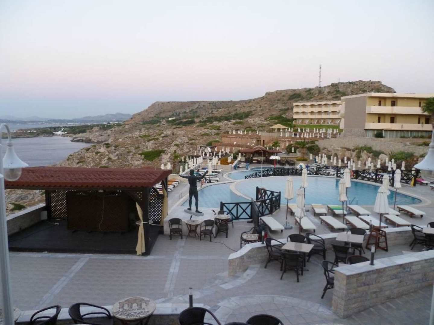Links Showbühne, rechts Poolanlage