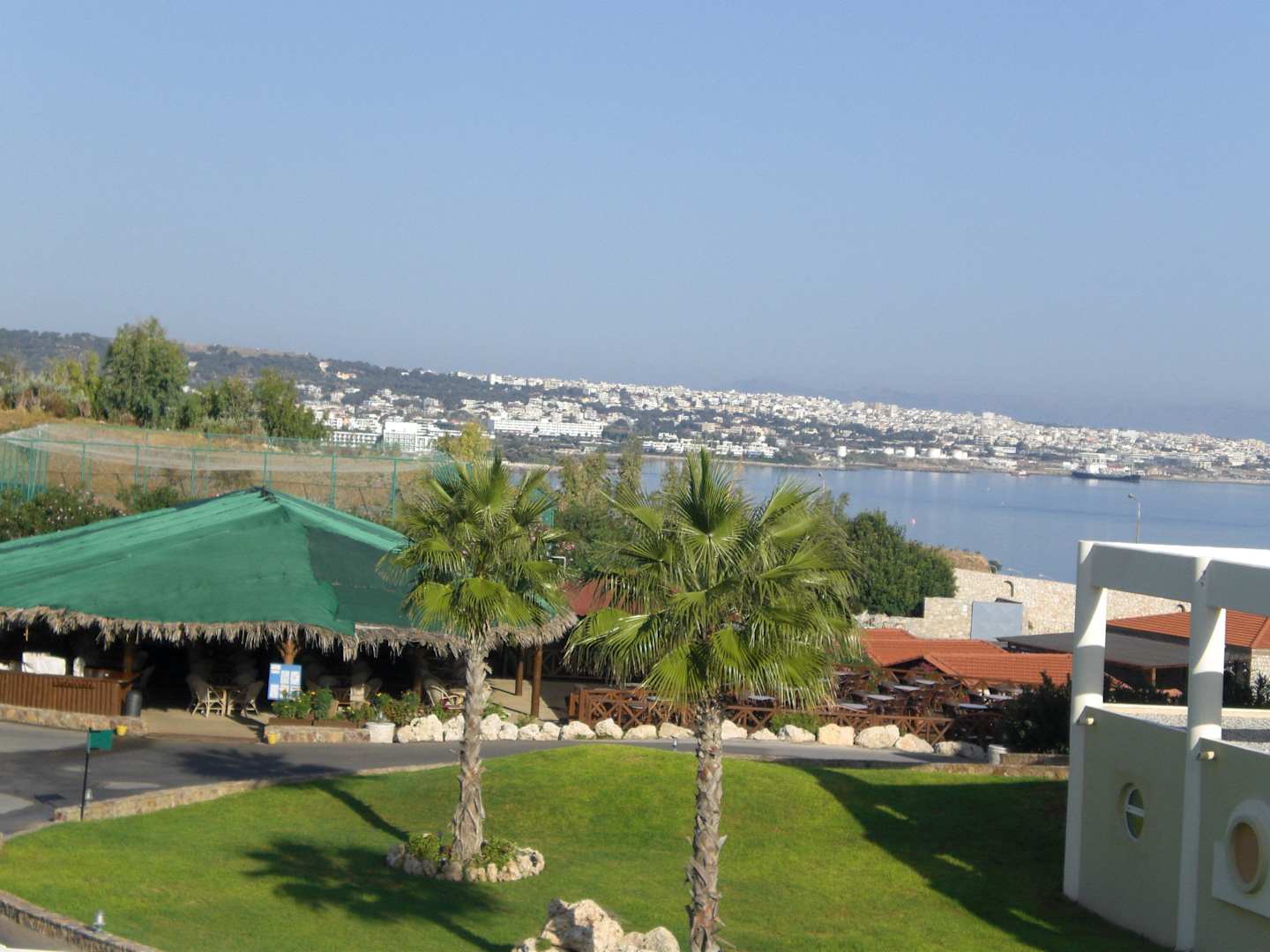 Blick über Gartenanlage auf Rhodos-Stadt